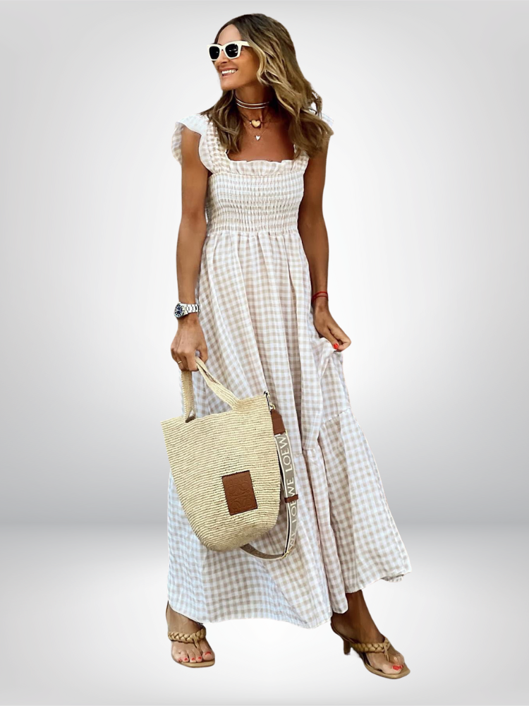 Brielle – Plaid Ruffle-Sleeve Maxi Dress